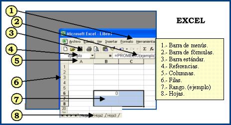 Nombre de las partes principales de la pantalla de Excel. Localiza el dibujo en tu cuaderno y estúdialo.
