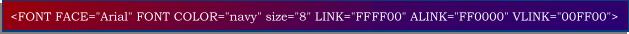 - FONT COLOR="***", LINK="***", VLINK="***", ALINK="***". (En *** se pone el nombre o número del color).